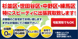 出張買取最重点エリア一覧 武蔵野市・三鷹市・小金井市・調布市にお住まいの方へ 2015年09月01日(火) ご内容はこちらからお読み頂けます▶ 杉並区・世田谷区・中野区・練馬区にお住まいの方へ 2015年08月20日(木) ご内容はこちらからお読み頂けます▶
